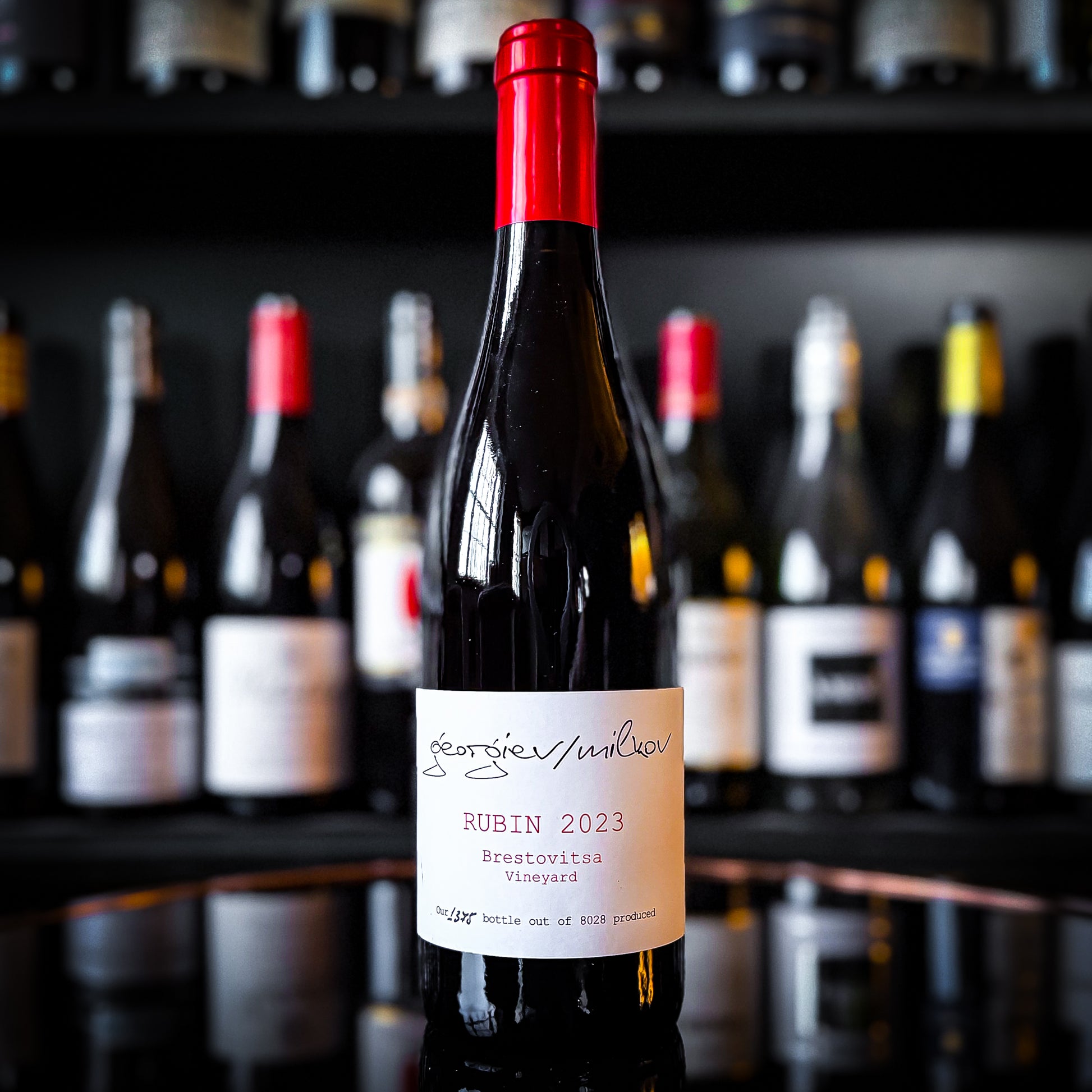 The Georgiev‑Milkov Brestovitza Rubin is a dry red wine made from 100% Rubin, an indigenous Bulgarian grape created in 1944 by crossing Syrah and Nebbiolo, prized for producing deeply coloured, expressive wines.